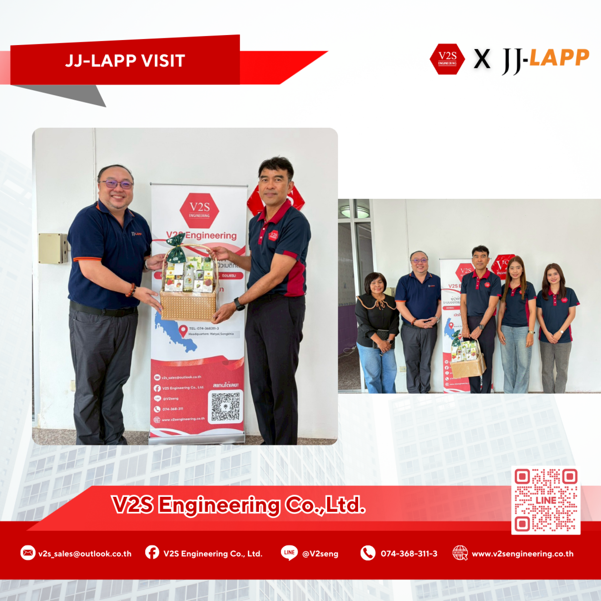 บริษัท วี ทู เอส เอ็นจิเนียริ่ง จำกัด ขอขอบคุณทีมงาน JJ-LAPP เป็นอย่างยิ่ง ที่ให้เกียรติเข้ามาเยี่ยมเยียนบริษัทฯ พร้อมมอบของขวัญสวัสดีปีใหม่ และร่วมพูดคุยแลกเปลี่ยนมุมมอง แนวทางการดำเนินงาน รวมถึงการวางแผนธุรกิจร่วมกันสำหรับปี 2569