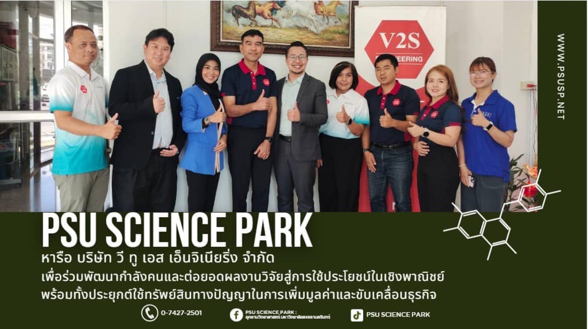 PSU Science park หารือ บริษัท วี ทู เอส เอ็นจิเนียริ่ง จำกัด เพื่อร่วมพัฒนากำลังคนและต่อยอดผลงานวิจัยสู่การใช้ประโยชน์ในเชิงพาณิชย์ พร้อมทั้งประยุกต์ใช้ทรัพย์สินทางปัญญาในการเพิ่มมูลค่าและขับเคลื่อนธุรกิจ